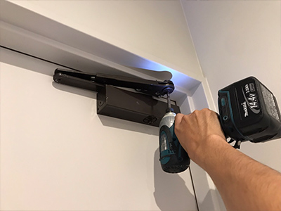 ドアの閉まり方が遅すぎたり、逆に強く勢いよく閉まってしまう場合は、ドアクローザーに不具合が発生していることがあります。ドアクローザーは開閉速度をコントロールする装置で、内部は油圧の仕組みで動いています。そのため、長年使用すると油漏れが起きやすく、適切な調整や部品の交換が必要になることがあります。沖縄オフィスづくりナビでは、ドアクローザーの状態を点検し、必要に応じて調整や交換の作業を行っています。