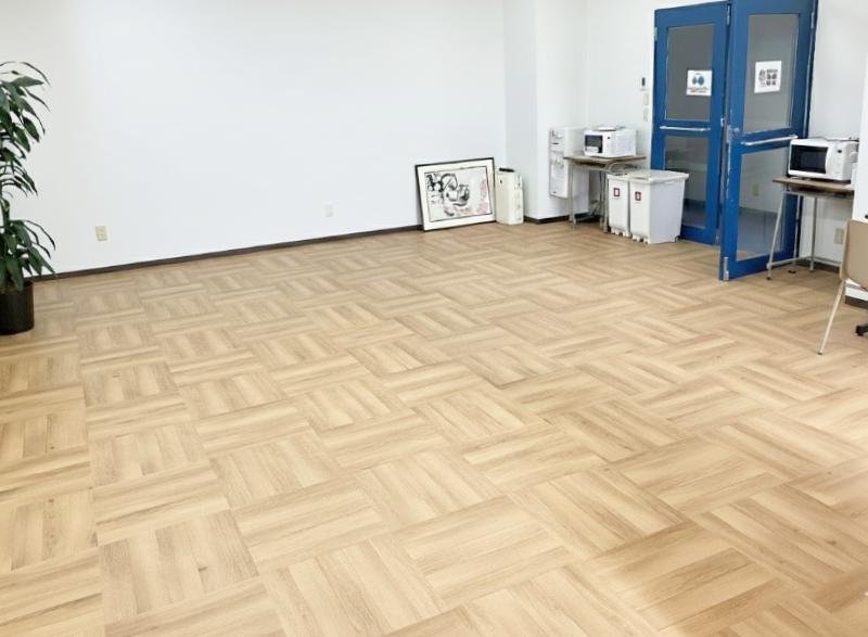 今回は、浦添市で事業をされているお客様からご相談いただいた、執務室と休憩エリアの床工事の事例をご紹介します。特に、執務室の床材を**タイルカーペットから木目調の塩化ビニルタイル(塩ビタイル)へと変更した点がポイントです。
