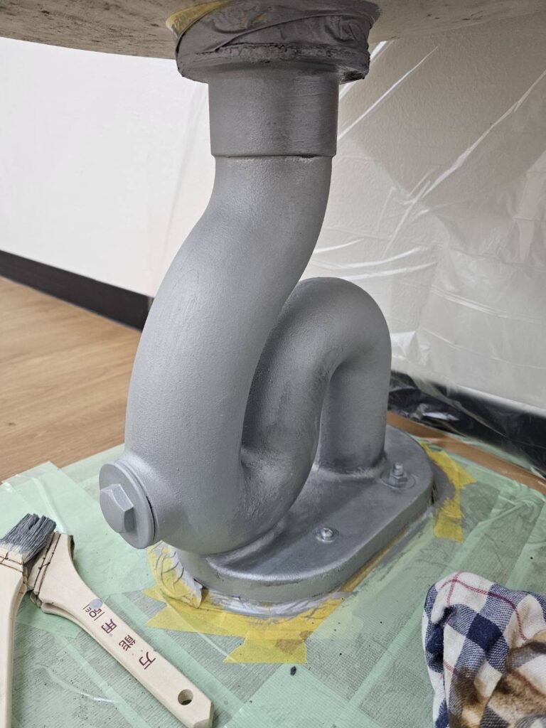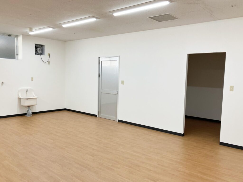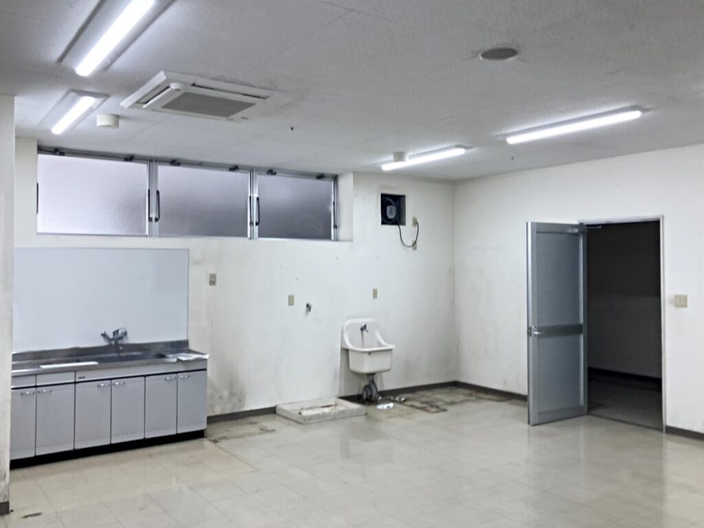 特にキッチン横の掃除用流し下の配管は、サビや汚れが目立っていたため、クリーニング後にサビ止め塗装を施し、リニューアル後の美しい空間と調和するように仕上げました。窓やドア、換気扇なども細部まで清掃し、清潔な休憩室が完成しました。