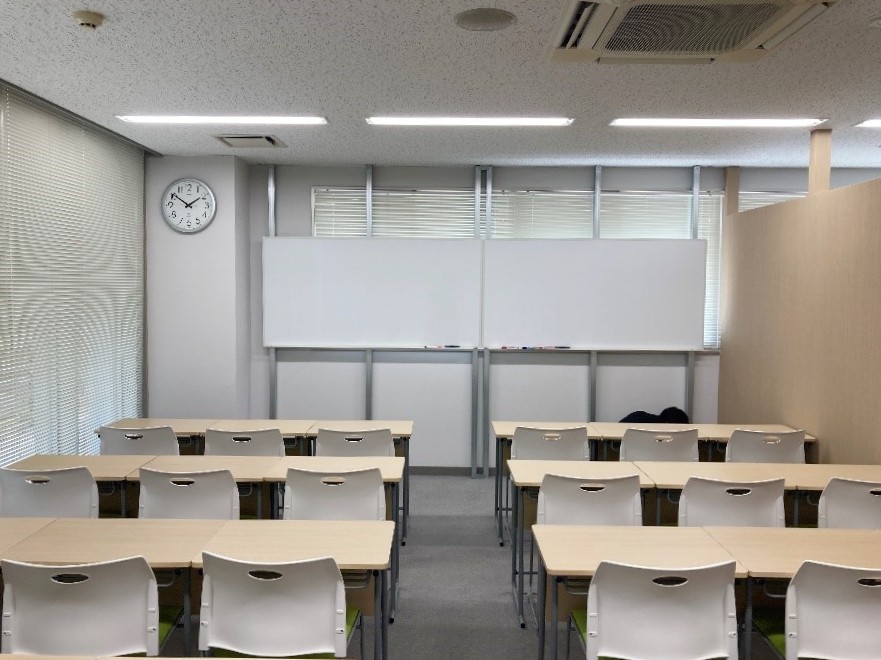 今回の内装工事では、授業の主役となる「ホワイトボード」にもこだわりました。脚付のホワイトボードではなく、収めたのは壁付けタイプのホワイトボード。ただ、窓枠にはブラインドもあるため、窓の手前に柱となるスタッドを建てた箇所に専用のビスでホワイトボードを留めて取付け致しました。取付け後、書き込む際の「ガタつき」が気になるというお声を頂き、現場で急遽下部にビス打ち補強を追加。先生が授業に集中できる、頑丈な指導環境を整えました。